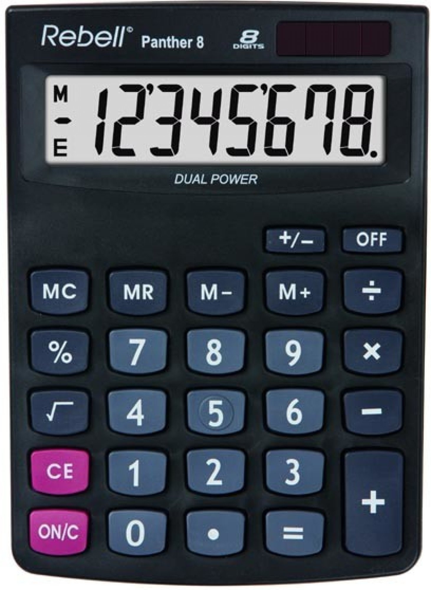 Stolová kalkulačka s 8‑miestnym displejom a plastovými tlačidlami. Opravné tlačidlo a tlačidlá na výpočet daní a prevod domácej a cudzej meny. Technická špecifikácia: •...